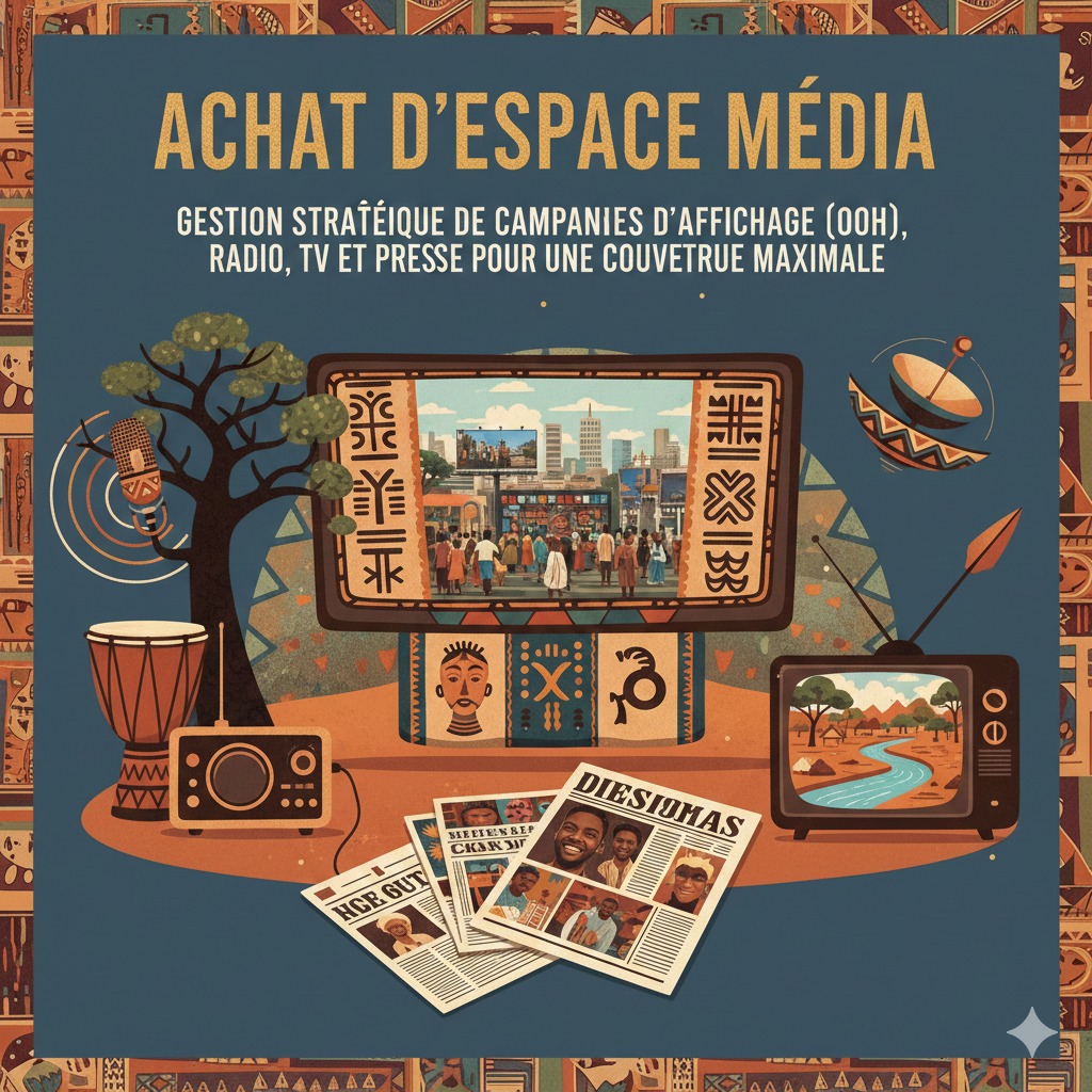 Gestion stratégique de campagnes d'affichage (OOH), radio, TV et presse pour une couverture maximale.